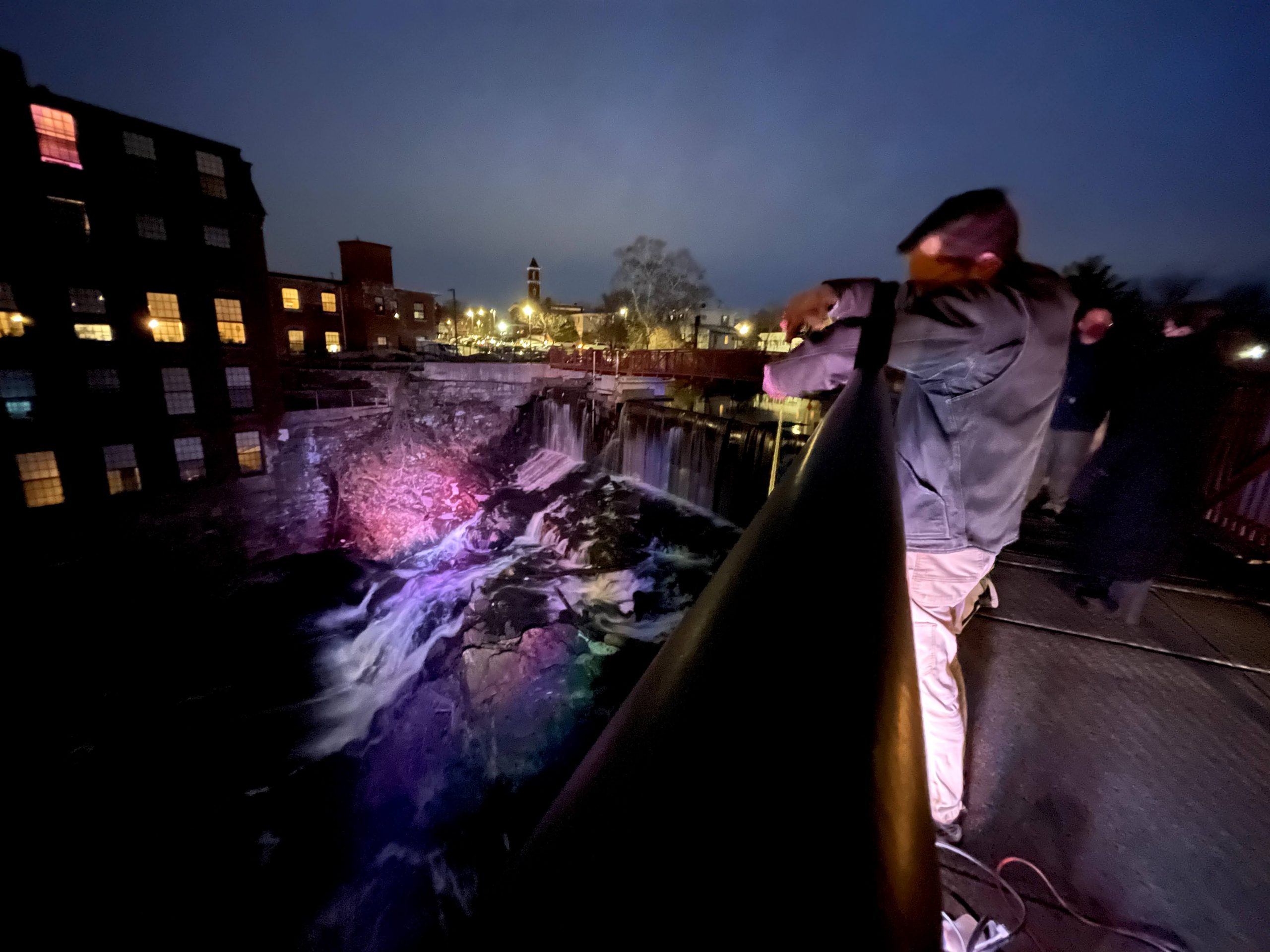 A community-engaged lighting design project in the works with the Methuen Arts Council, encouraging local artists to create art with light on the canvas of moving water.