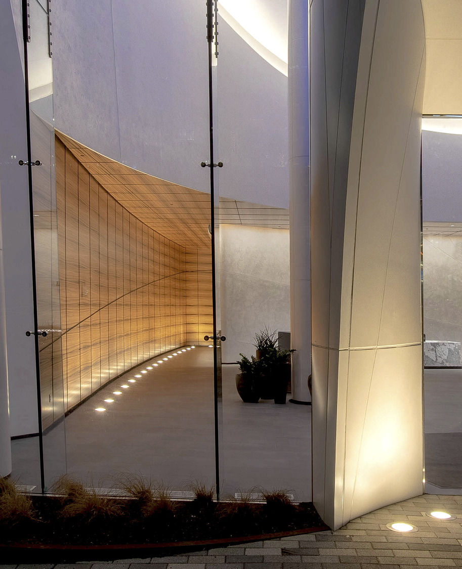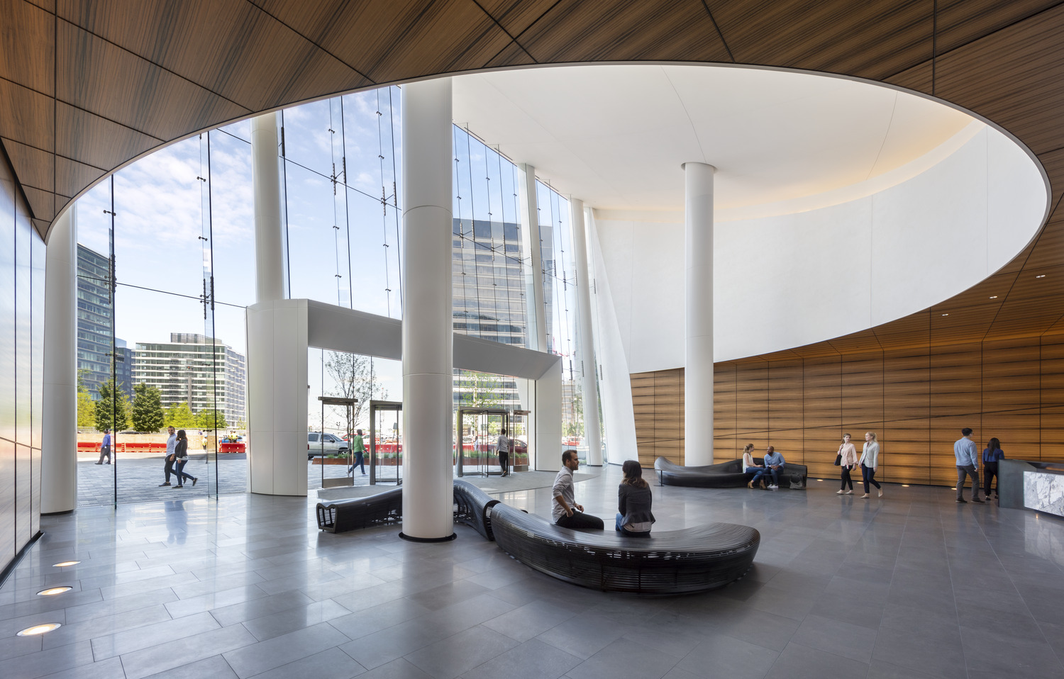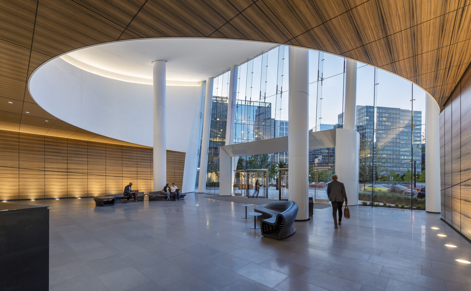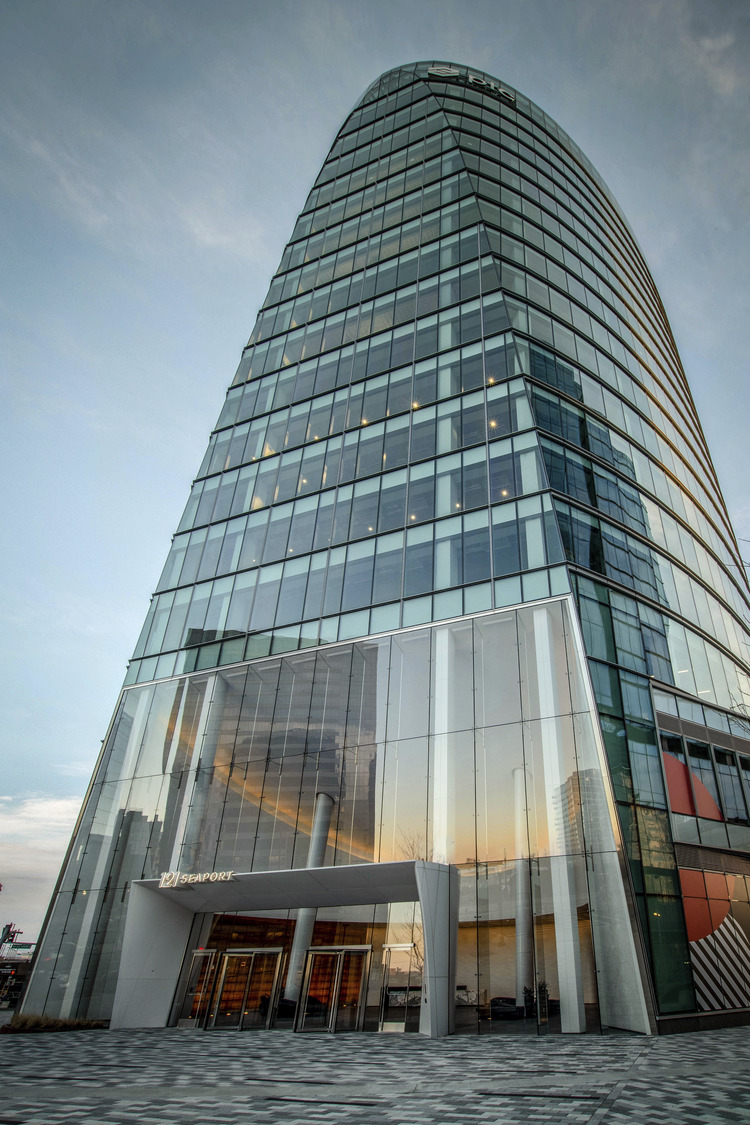 This 17-story, 450,000-square-foot Class-A office building in Boston’s Seaport District promotes sustainable design, while enhancing neighborhood vibrancy and innovation within the building. Lighting was carefully selected for both sustainable and aesthetic opportunities. Tenant amenities include a private fitness center and a rooftop terrace with sweeping skyline and harbor views. 121 Seaport achieved LEED Platinum efficiency certification; the site commanded creative orientation and material selection, and from these incremental developments has become an unprecedented embodiment of sustainability.