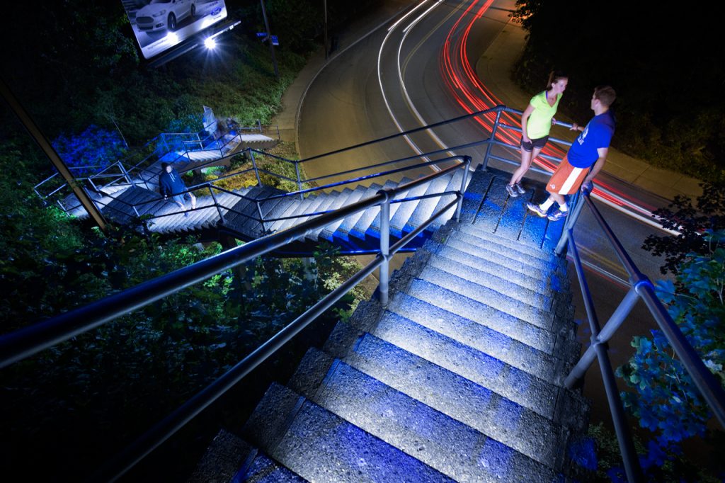 The South 18th Street Steps are part of a series of projects that aim to highlight and celebrate gateways to the South Side Slopes neighborhood. Located on the slope’s busiest street, and at its boundary with the south side flats, the 18th St. Steps are a high-visibility icon, as well as a heavily trafficked pedestrian route. The lighting design for the steps serves as an eye-catching element that will draw attention to the neighborhood above, and create an exciting experience for pedestrians as they move from the ‘Flats’ up to the ‘Slopes’ of the South Side.