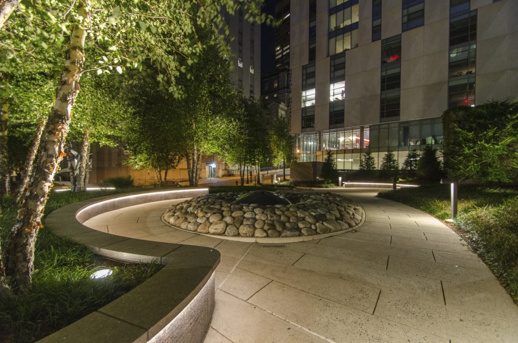 Located near the historic State House in Boston, the Garden of Peace commemorates victims of homicide. It is a symbol of the hope for peace, and a reminder of the lasting impact of violent acts. The lighting for the memorial encourages quiet contemplation. The central focus of the memorial is a dry streambed, filled with smooth stones engraved with the victims’ names. A trickle of water appears, moving through the garden, and finally flows into to a pool with a soaring sculpture, representing hope. Lam Partners facilitated upgrading and retrofitting the existing light fixtures to LED, and added new LED fixtures for future signage locations.