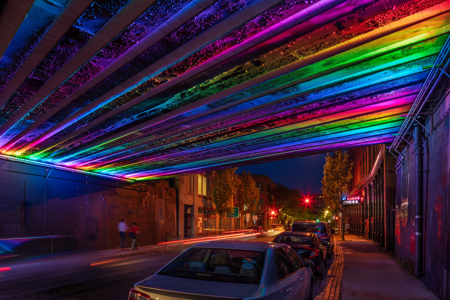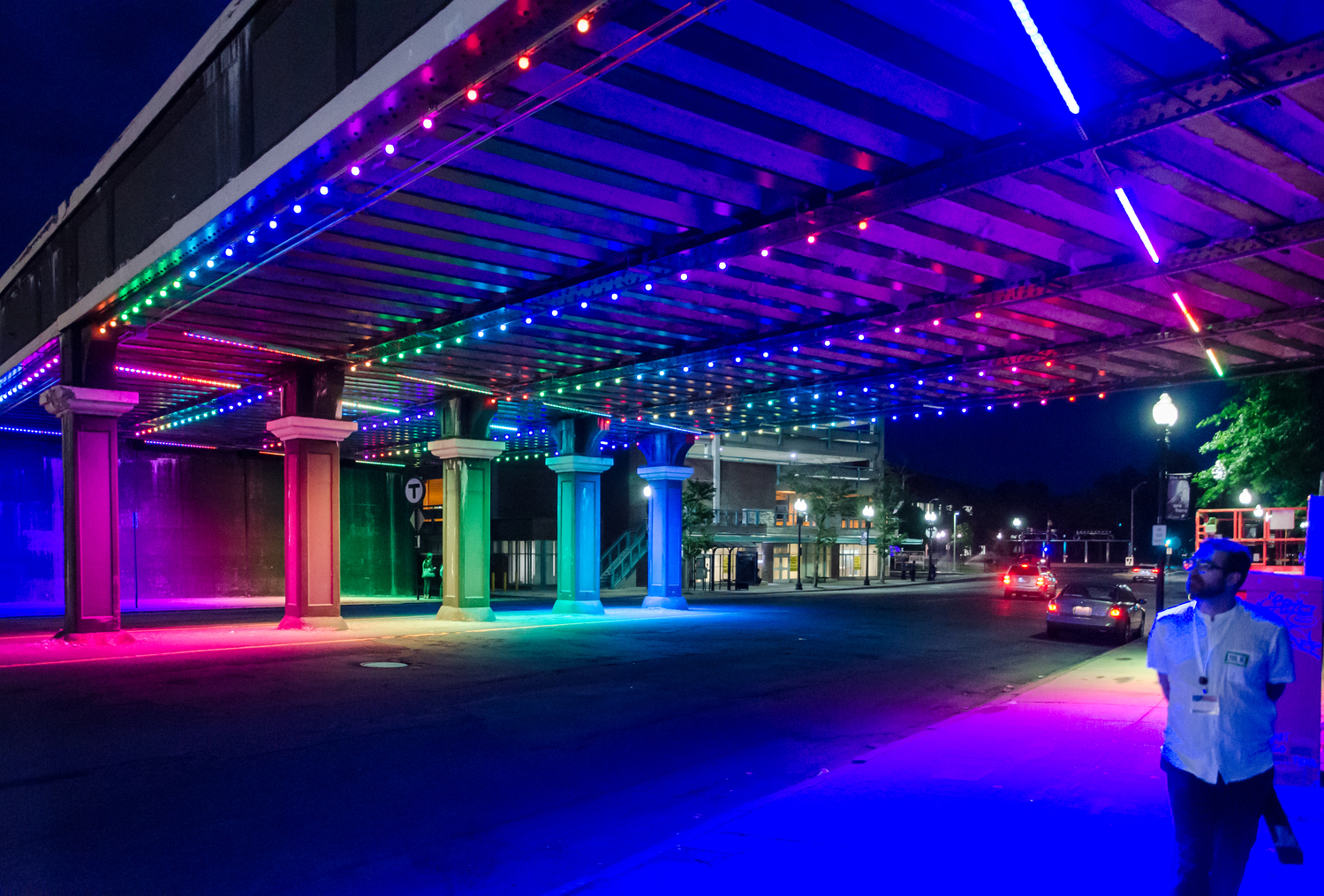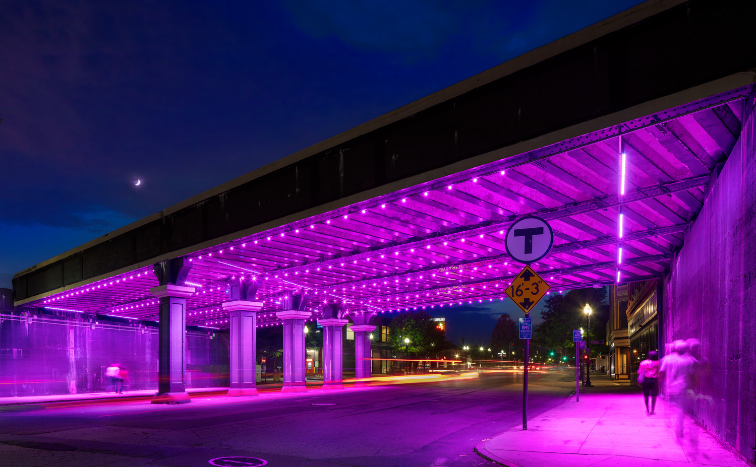 Beyond Walls is a group of business owners, residents and artists creating public art, seeking to revitalize Lynn, MA, and to offer improved wayfinding and a sense of security in the heart of the downtown area. Lam Partners teamed with Payette and Port Lighting to design dramatic and colorful underpass lighting, connecting Central Square and Washington Street, creating an inviting and appealing nighttime experience.