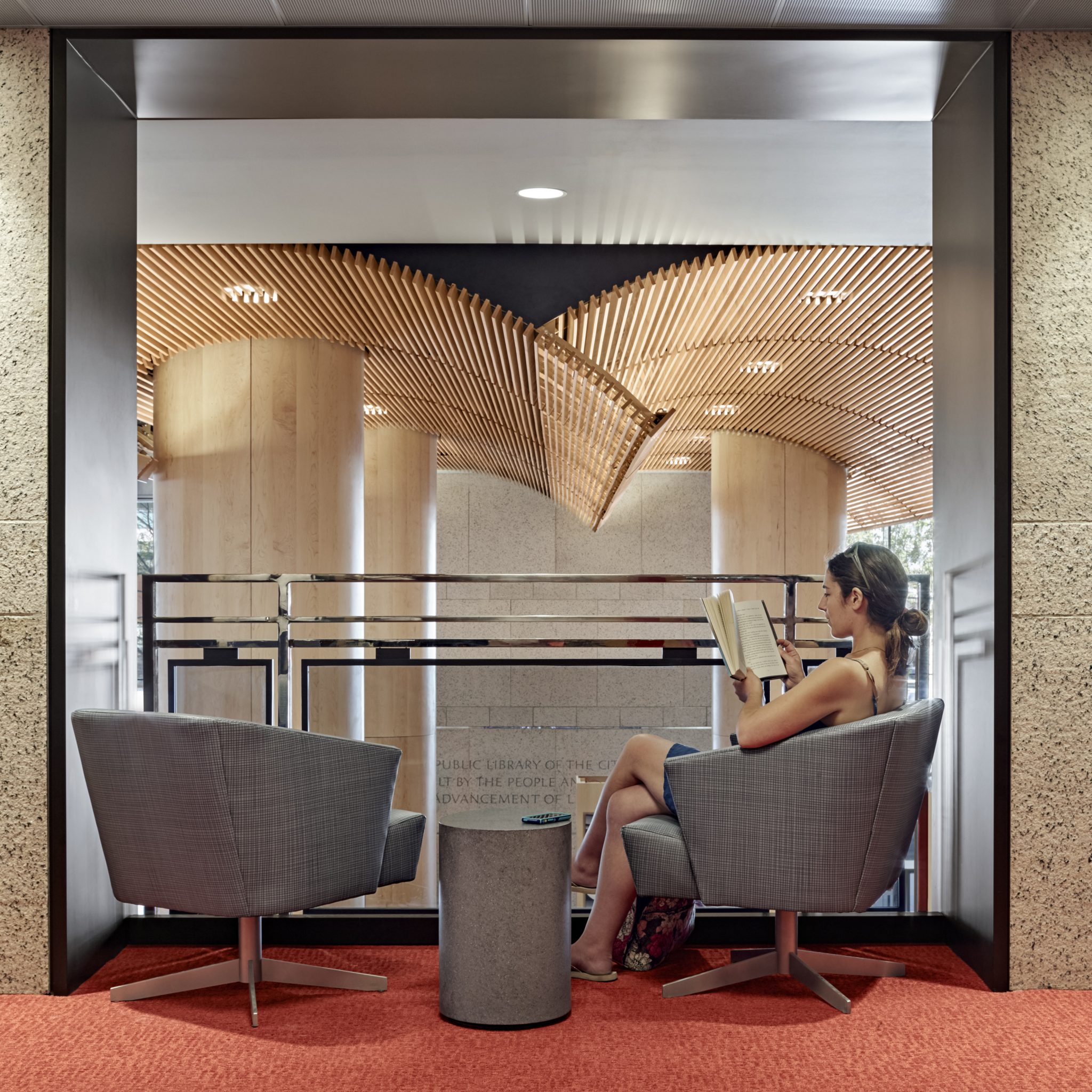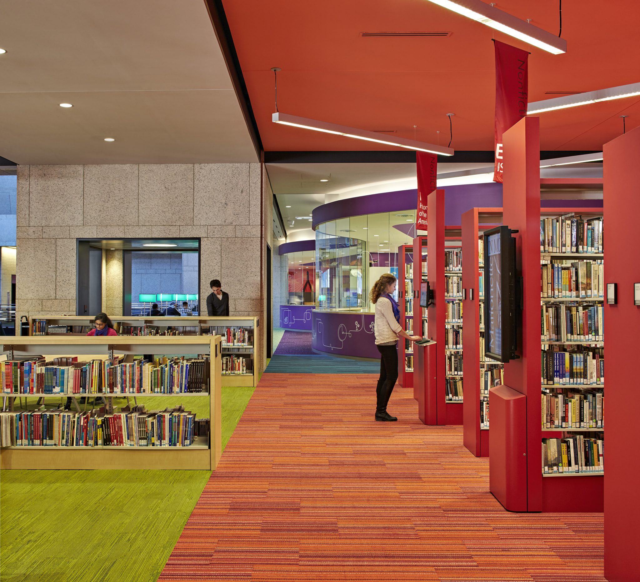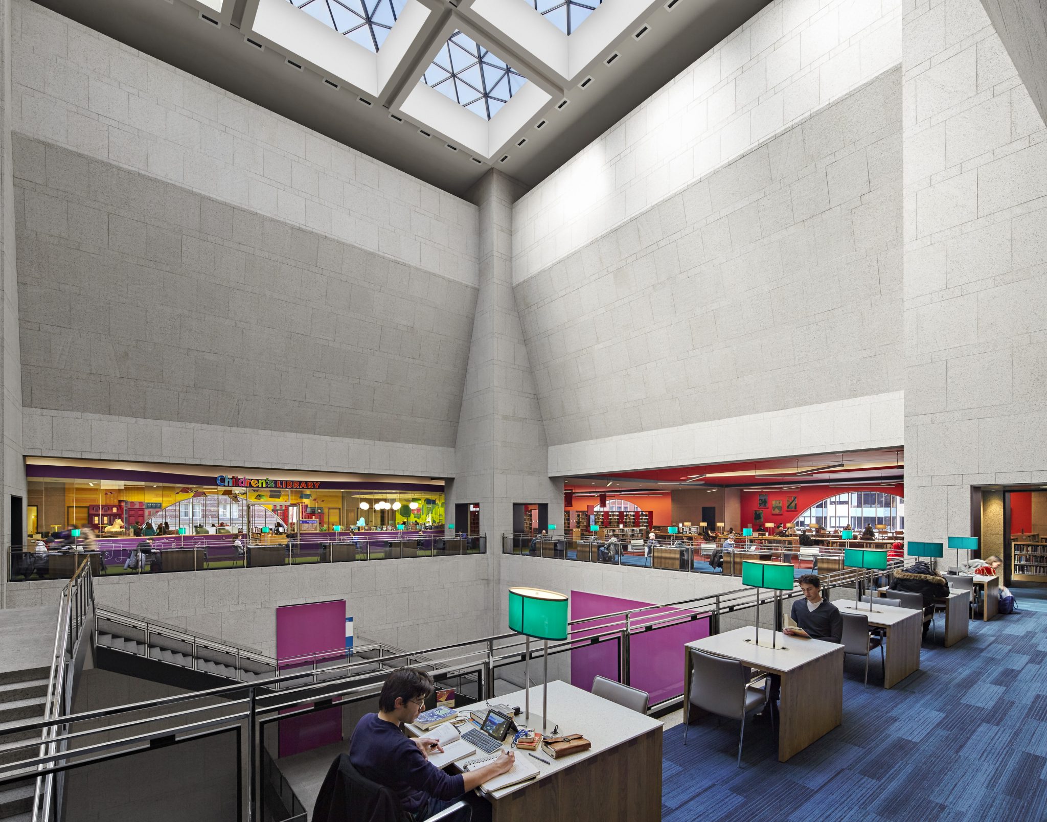 The Johnson Building project consists of 156,000 square feet of renovations (in two phases) to the landmarked 1972 Phillip Johnson Addition to the Central Branch of the Boston Public Library. Phase 1, completed in early 2015, provides greater and improved amenities for the Reference, General Collections, Children’s, and Teen’s areas.