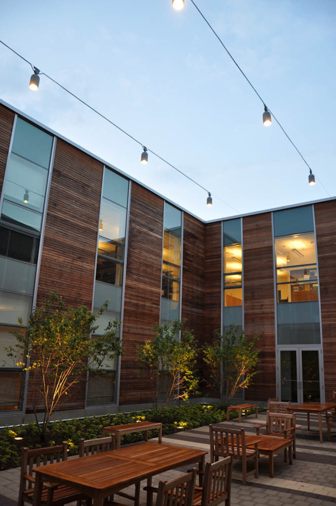 Community involvement and civic pride forged the project. A beloved swath of Astroturf was transformed into the county civic building, landscaped plaza space, and a multifunction pavilion sheltering a seasonal ice rink, arranged as a sequence of active outdoor rooms within the vibrant retail district.