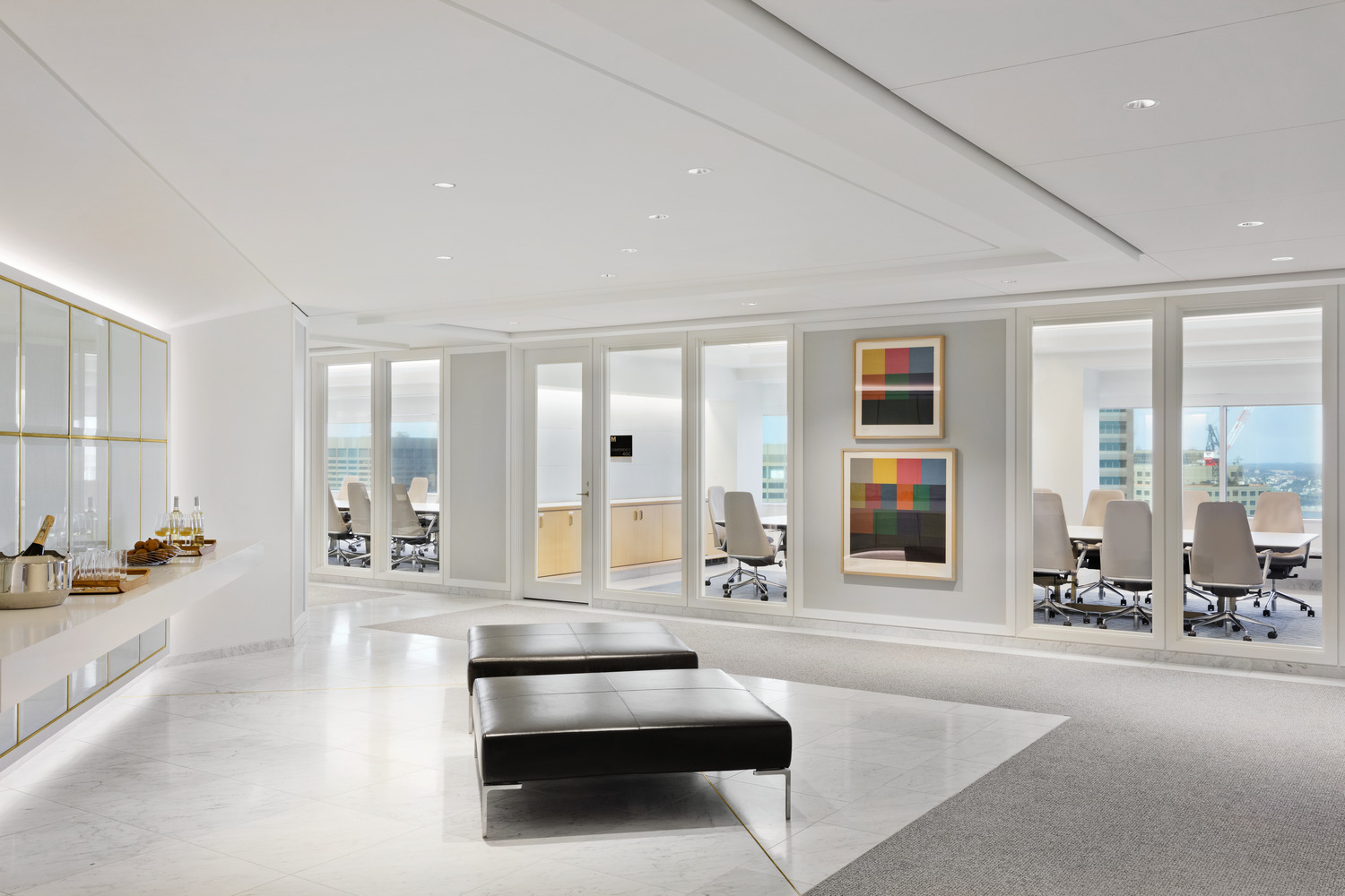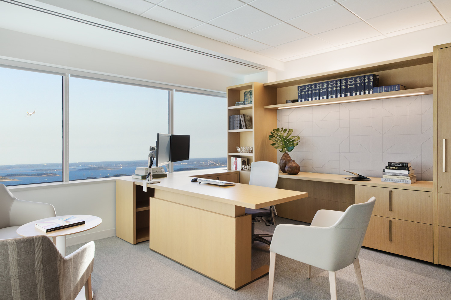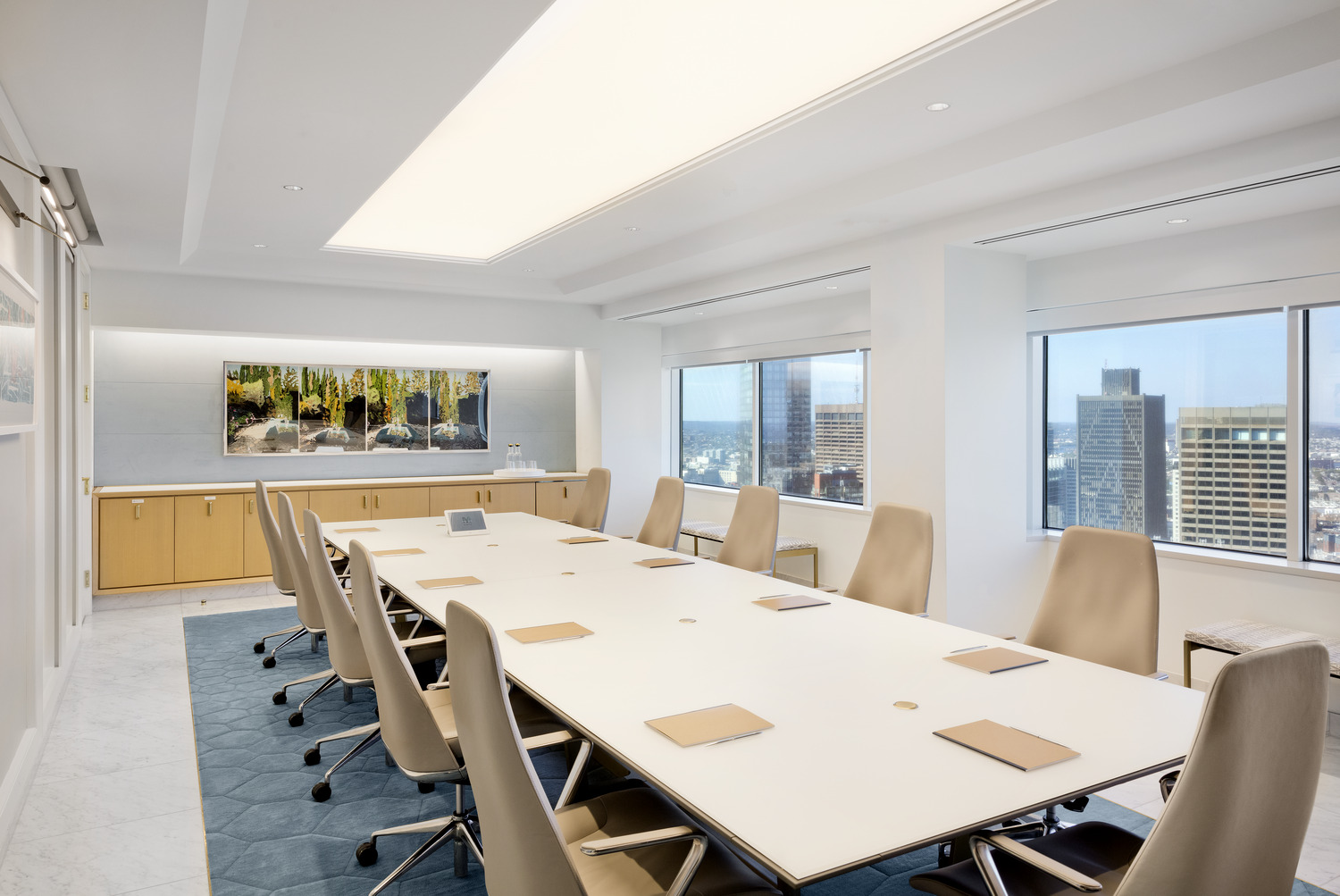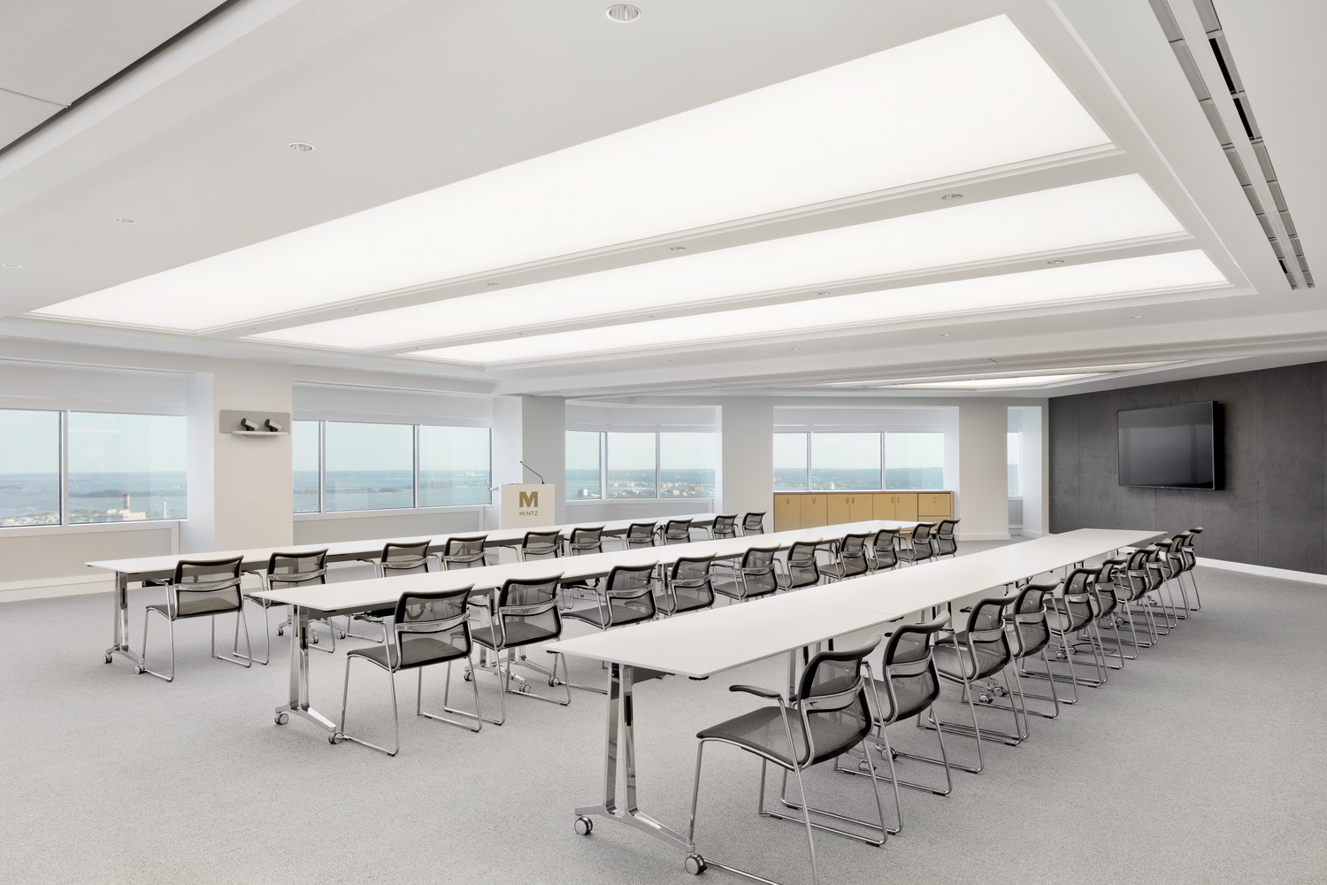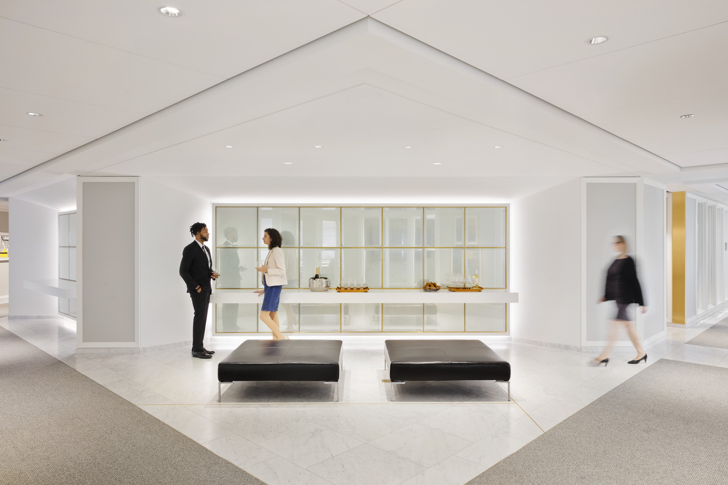 The client is a contemporary law firm, which was focused on creating both a welcoming and high-end environment for its new offices in downtown Boston. Elegant and well-tailored, the office is complete with architectural and millwork details that add richness to its surfaces. The lighting was designed to reinforce these details through integration and alignment that create deliberately subtle shades of white, and introduces complementary decorative elements that accessorize and add sparkle. The office is primarily composed of both private offices and open workspaces, conference rooms, common areas, and specialty cafés. A special “client-facing” floor was also included in the design, with a lobby, larger conference rooms, and flexible training spaces. Diffuse lighting both from indirect sources and backlit, translucent stretched fabric membranes, along with direct light sources, creates a pleasing and bright environment. Additionally, the client has a large art collection that required curating focused light on almost every location of artwork, treating the corridors as an art gallery.