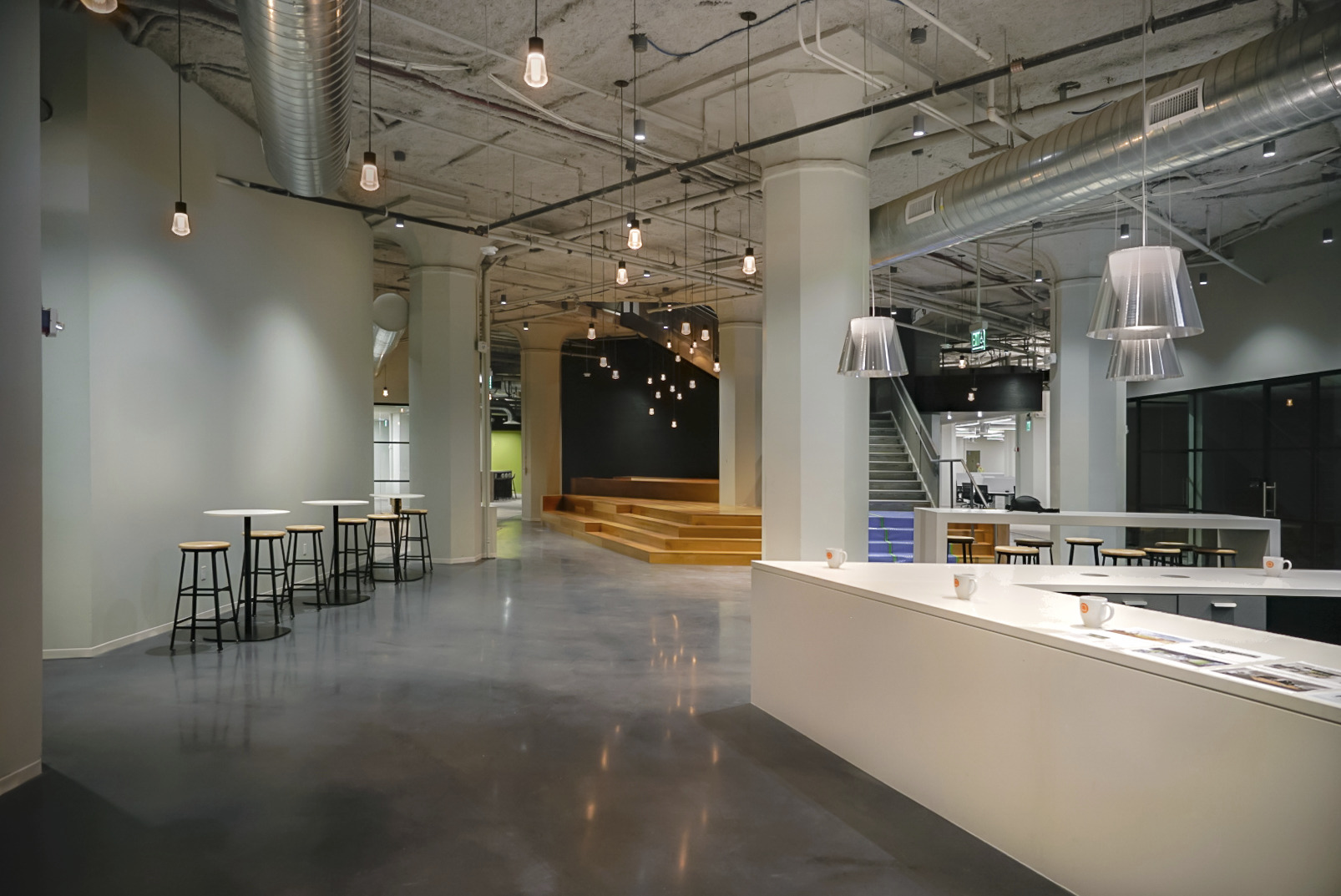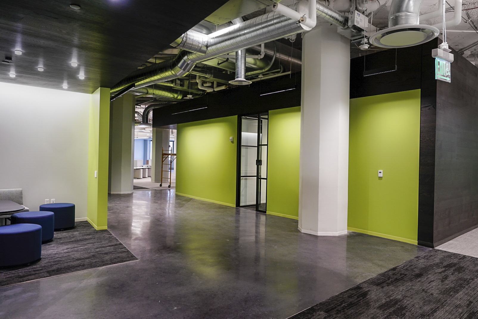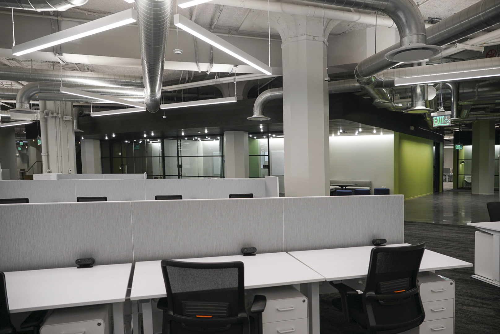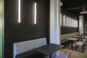 At the speed of a drive-through, this fast-growing, fast-moving tech company that services the restaurant industry needed to move into its new 72,000 square foot digs, six months after placing its order. “Thank you. Pull up to the second window please!” The design team was challenged not only with creating an inspiring menu of workspace experiences, but also in developing a process for quick decisions, while shopping for readily available ingredients. Selecting lighting fixtures that were modular, and simple, with short lead times and favorable price tags, was paramount. Photometrically accurate 3D modeling, employed by the lighting team, was baked into the design process early to yield realistic renderings that enabled quick decision making. All of the ingredients were lovingly combined to create a working kitchen for energizing high-tech chefs, who are coding and creating the next generation of delicious apps.