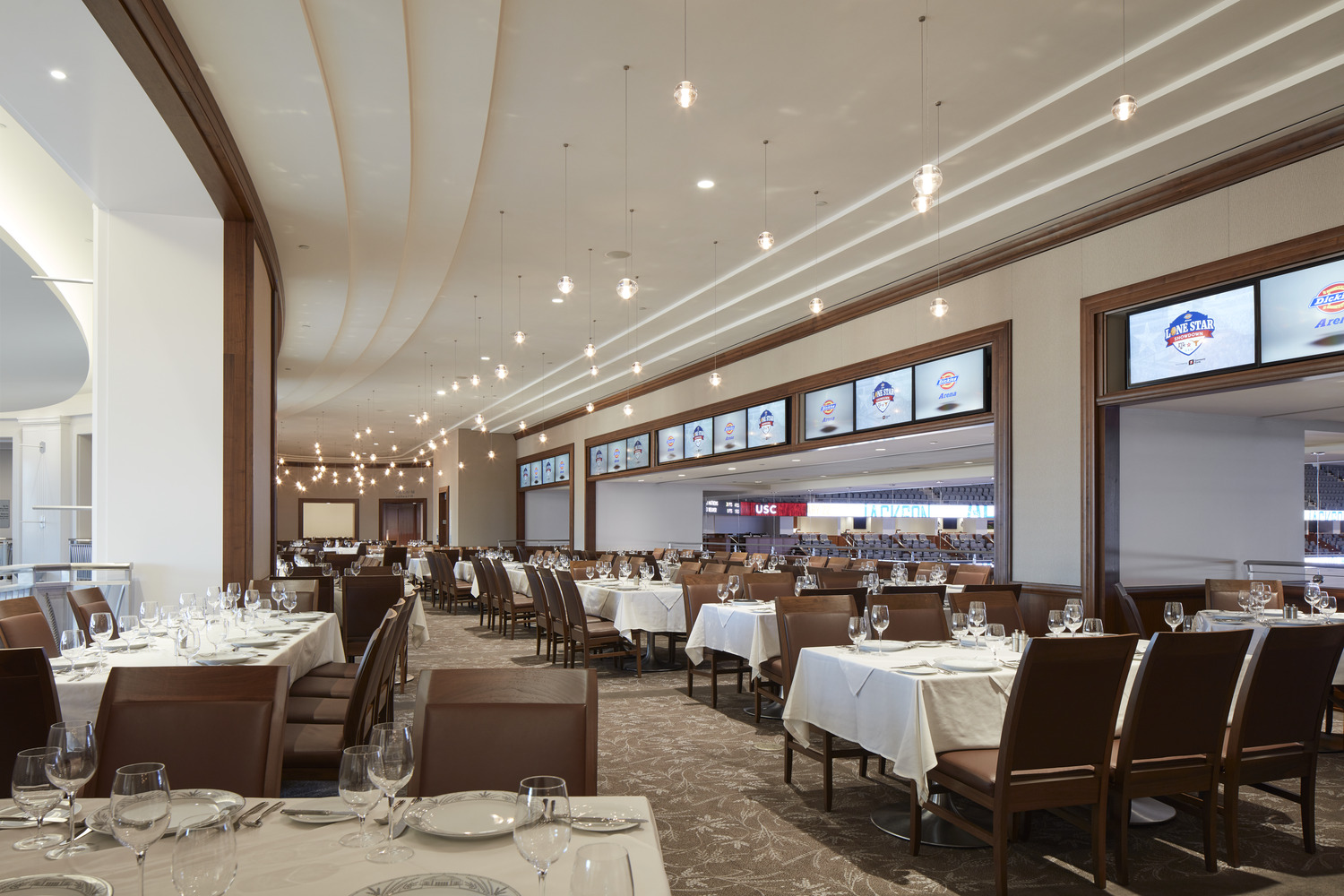 The Dickies Arena in Fort Worth, TX, built in the Art Deco style in exquisite detail, is the grand new home to the Fort Worth Stock Show & Rodeo, a Texas institution. With seating for up to 14,000, the enormous state-of-the-art multipurpose facility is capable of hosting equestrian shows, NCAA Division I college basketball games, ice hockey games, various indoor sporting events, concerts, and a variety of conferences and trade shows, in addition to the Rodeo. The main arena is built over an exhibition space, the roof of which serves as an outdoor event plaza. The arena also is enhanced by a unique custom fixture design.