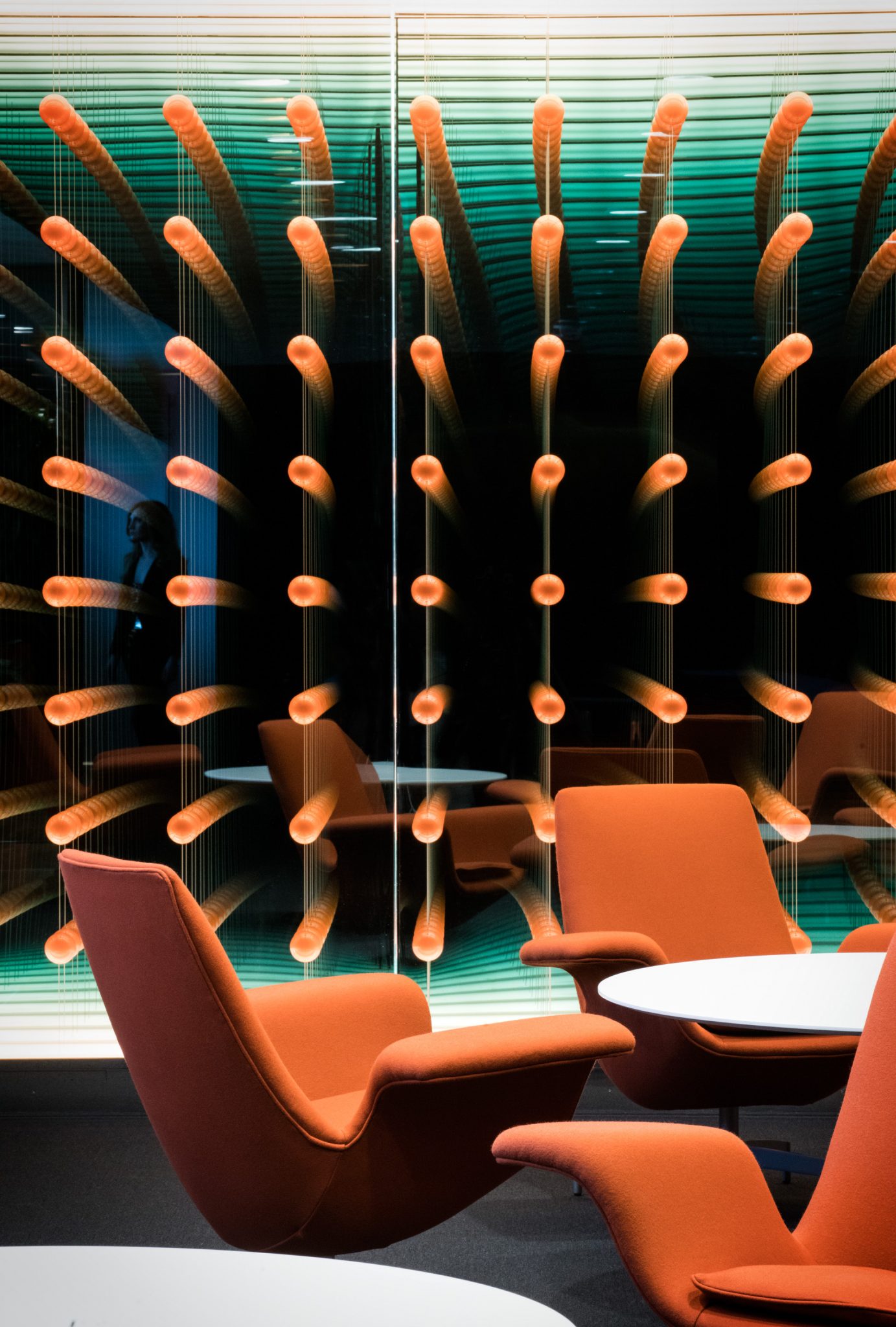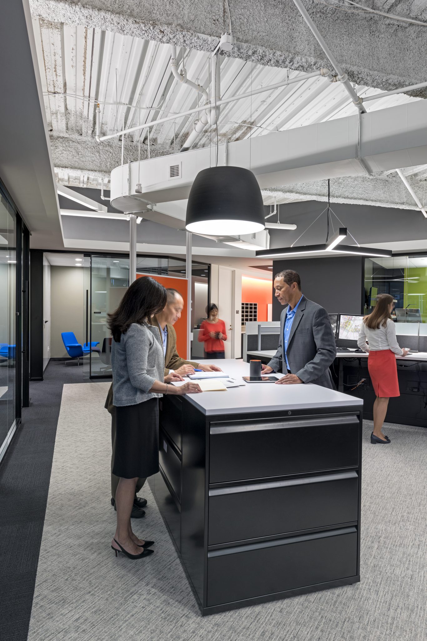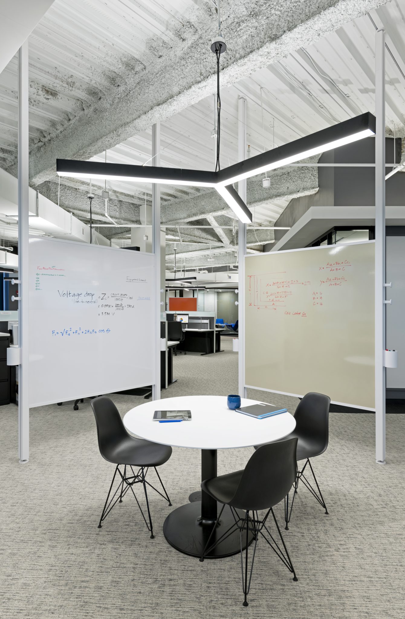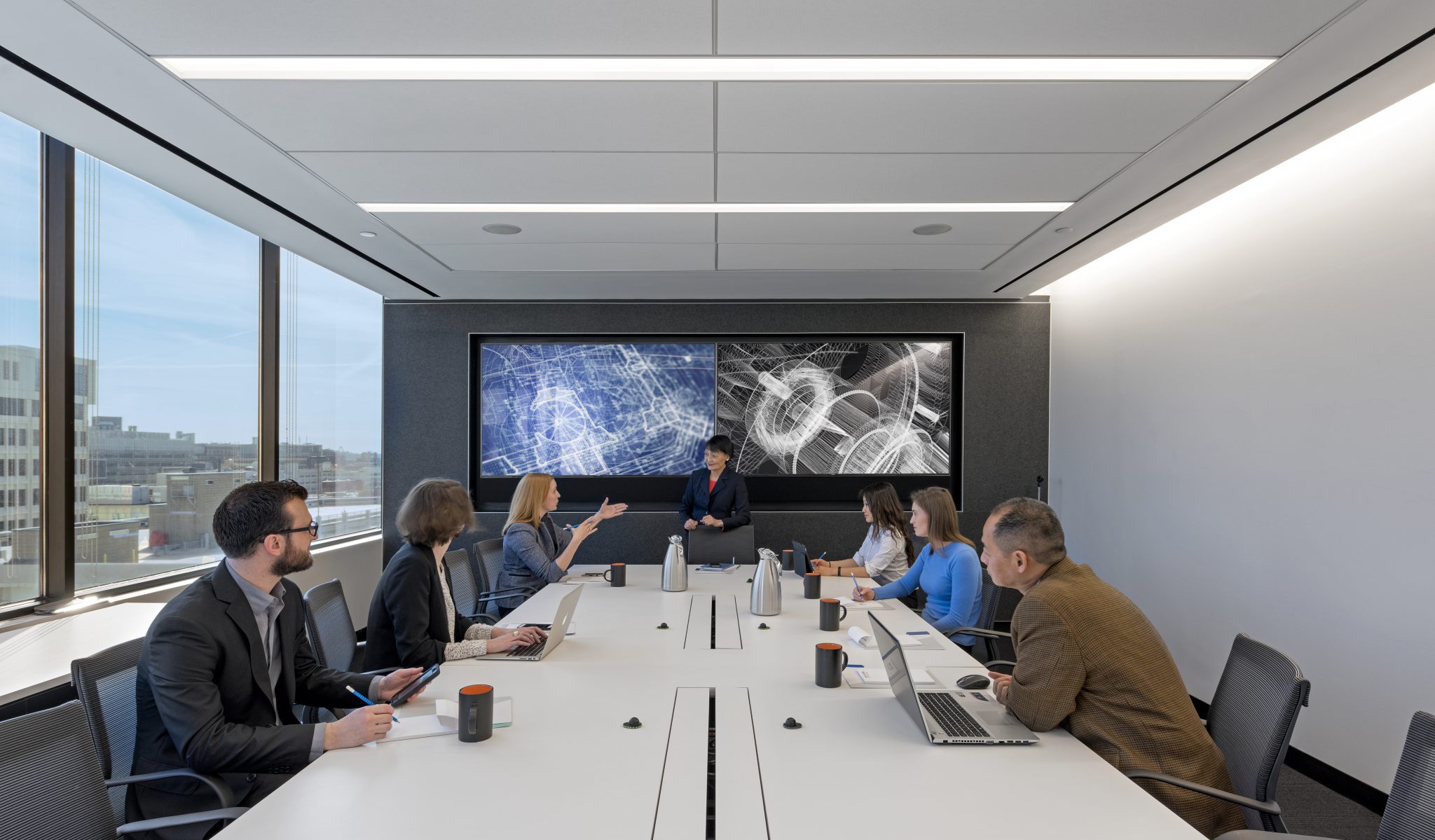 Magnifying the quiet brilliance of many scientists and casting light into the dark shadows of a tired, old 1980s building were the primary goals of the design team. Draper Labs is switching its focus from government contracts to the public sector for the first time in over 85 years of its history. The remarkable minds that helped Apollo 11 safely navigate to the moon in 1969 needed an environment conducive to their highest levels of performance. The interior design needed to reflect the intelligence, creativity, and ingenuity of these scientists. Each programmed space utilizes a unique visual enhancement conducive to the programmed usage. Incorporating LED light sources exclusively, the design team was able to achieve lighting power densities 26% below the energy code. Further energy reduction is accomplished through automatic daylight dimming in all perimeter zones, and vacancy sensors in small offices and meeting rooms.