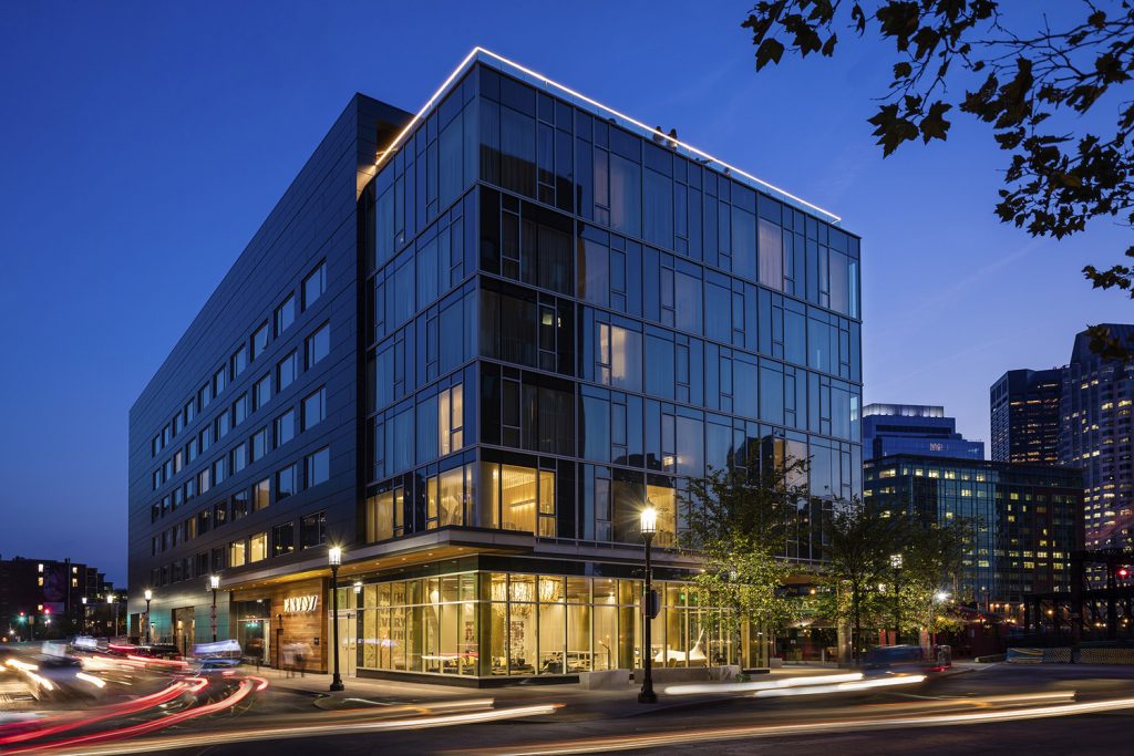 Starting with its floor-to-ceiling lobby windows and rising to its 4,000-square-foot rooftop bar, the new 136-key Envoy Hotel—part of Marriott’s Autograph Collection—offers a deliberate effort to connect to its picturesque location on Boston Harbor. A mixture of bespoke lighting was used throughout the hotel and guestrooms to evoke conversation and to also reference the hotel’s emerging neighborhood, dubbed the “Innovation District”.