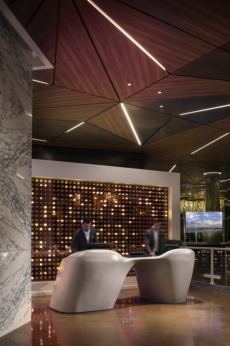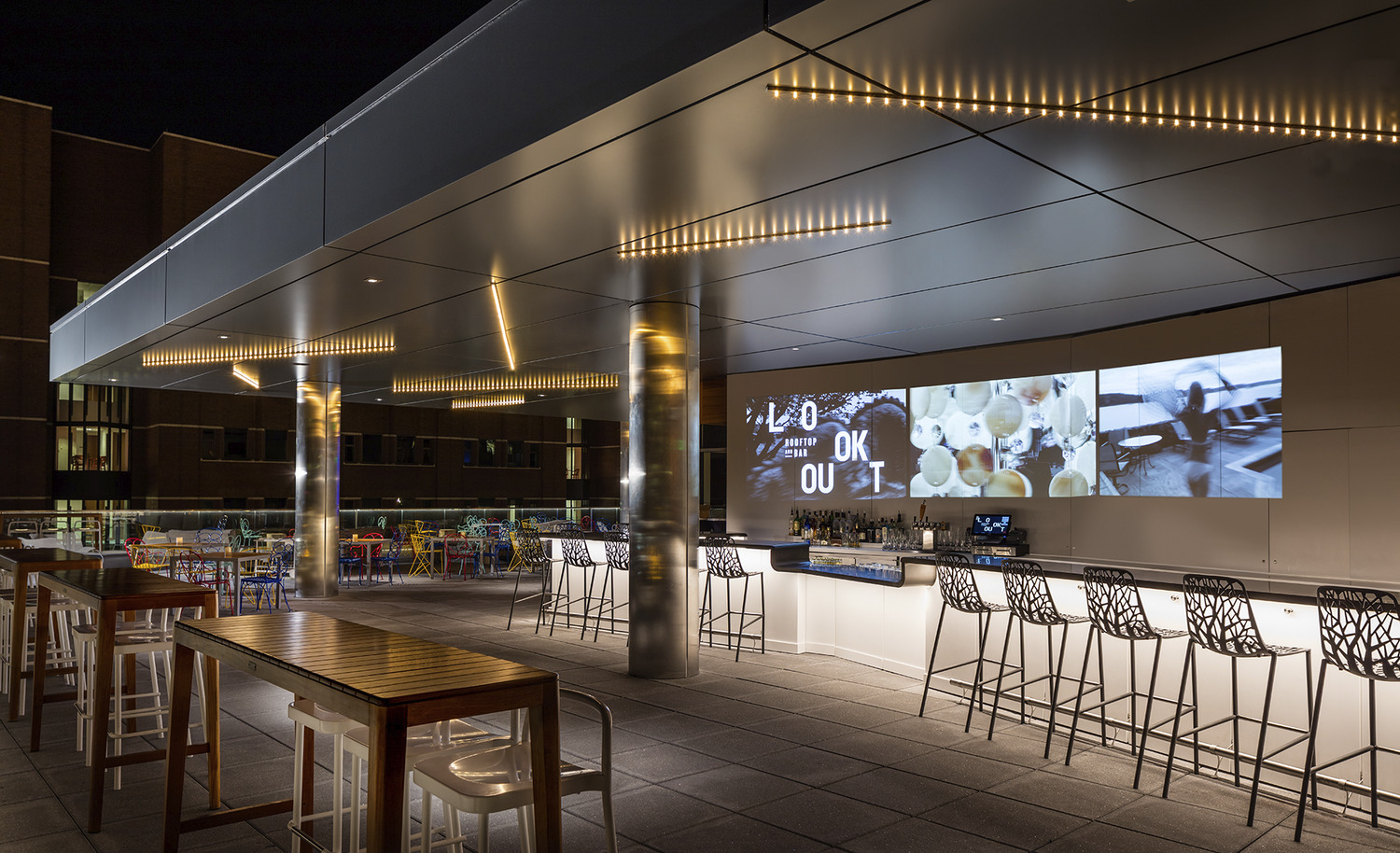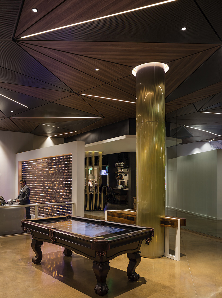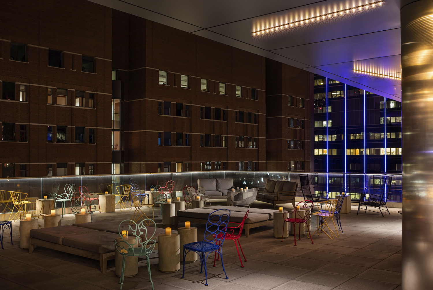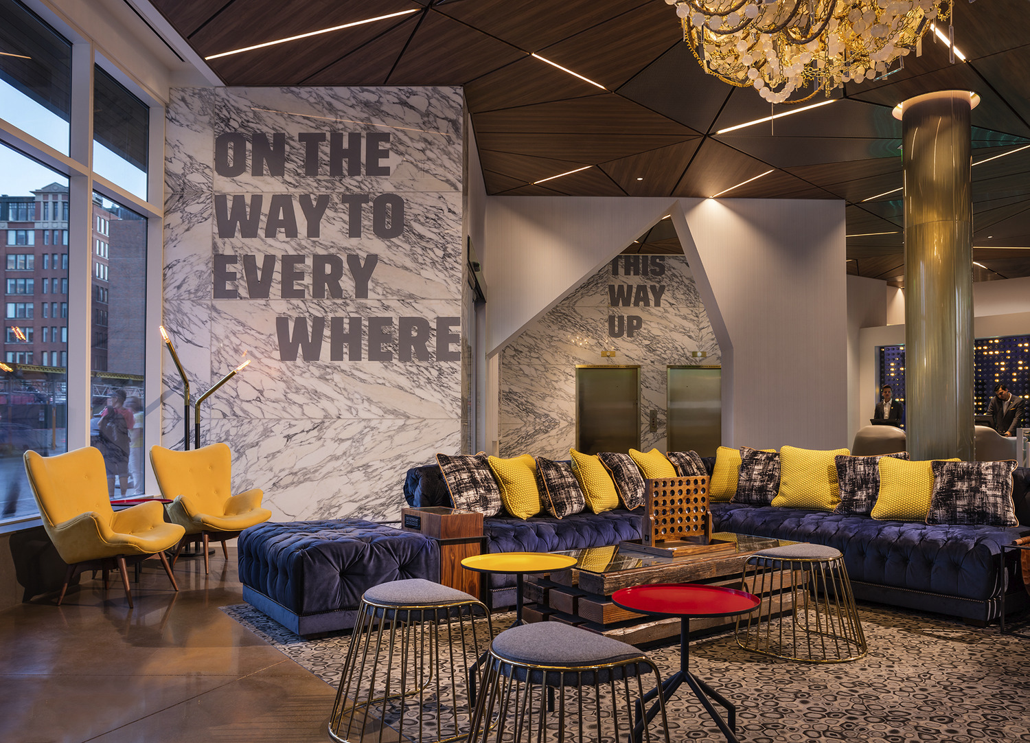 Starting with its floor-to-ceiling lobby windows and rising to its 4,000-square-foot rooftop bar, the new 136-key Envoy Hotel—part of Marriott’s Autograph Collection—offers a deliberate effort to connect to its picturesque location on Boston Harbor. A mixture of bespoke lighting was used throughout the hotel and guestrooms to evoke conversation and to also reference the hotel’s emerging neighborhood, dubbed the “Innovation District”.