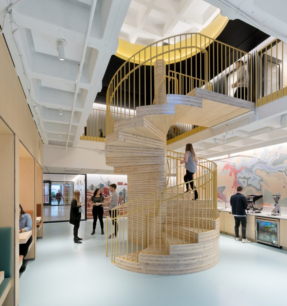 This international tech firm has undertaken a significant expansion of its Kendall Square offices in the Cambridge Center Complex. This expansion includes two full floors, totaling approximately 30,000 square feet, providing new workspaces, meeting rooms, and eateries to make the workplace feel more like home. Funky pendants offset illuminated walls, which display supple textures, graphics, and colors. Open office areas are filled with sunlight, accentuated with a herringbone pattern of visually appealing pendants, and a brightly lit core to balance the daylight. The design creates a kinetic and energetic, yet cohesive workplace, within a comfortable luminous environment.