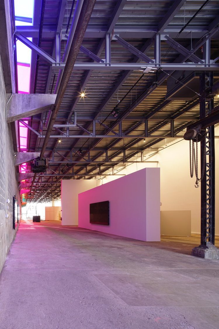Located in a 15,000-square-foot industrial space at the active East Boston Shipyard, the ICA Watershed creates a unique setting for artistic exploration. Visitors are greeted by translucent polycarbonate façade on either end of the elongated space, illuminated from within to create a lantern effect, visible from across the Boston Harbor. Breaking from the typical black box gallery model, daylight pours through a narrow skylight, exposing the richly textured concrete-and-cinder-block surface of the west wall, while linear fixtures tucked behind beams wash the opposing white wall. A grid of clamping bars provides homes for art lights among the steel trusses. This series of lighting schemes creates a unique visitor experience throughout the building and gallery spaces, while revealing the Shipyard’s industrial history.