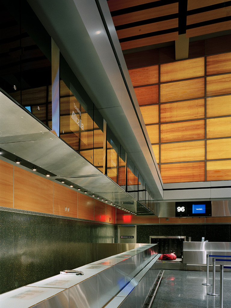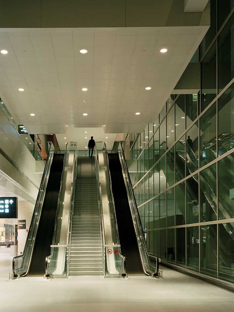 The expanded and renovated space features separated departure and arrival levels with dramatic multistory spatial connections, replacing the outdated single-level facility. The architecture puts forth a friendly, welcoming ambience in which lighting plays a key role.