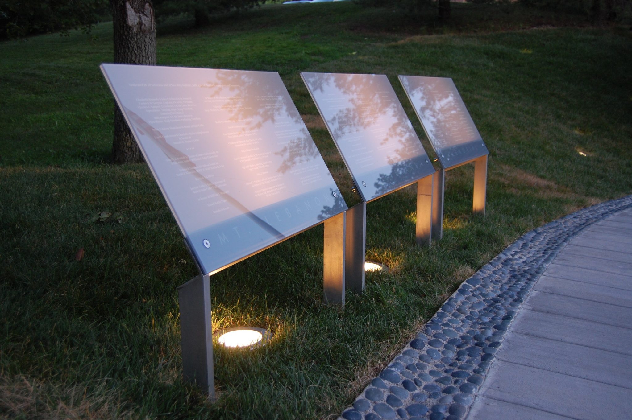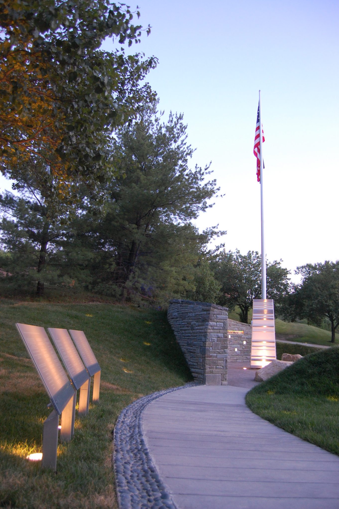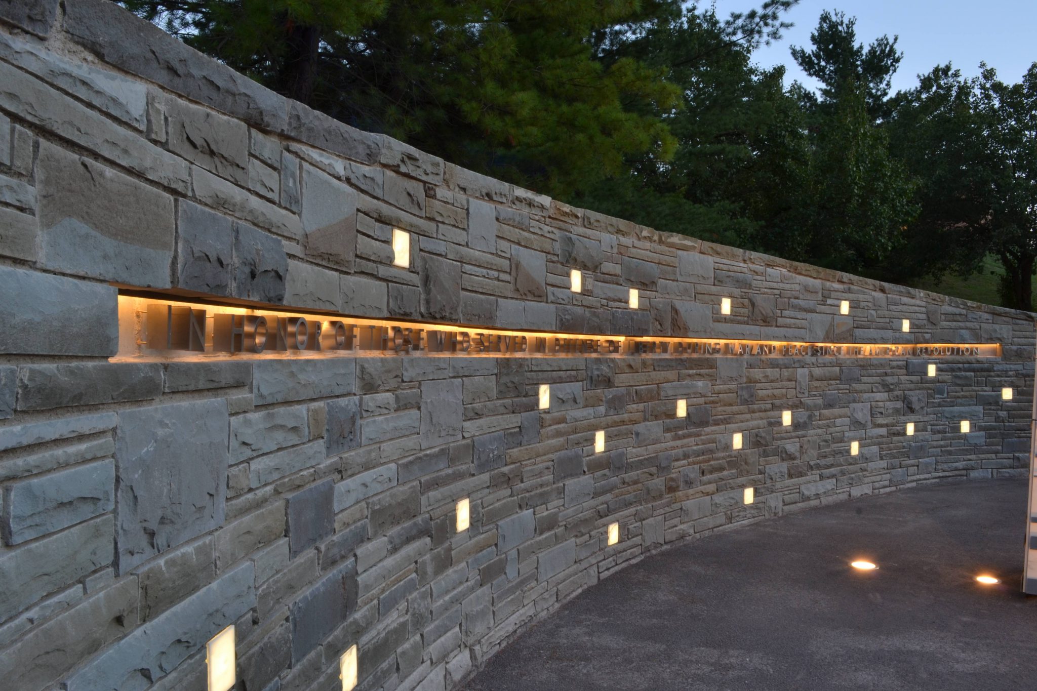 The challenge was to create a memorial to honor the soldiers of this Pittsburgh suburb that both reflects the heritage of the community and serves as a solemn venue for reflection and contemplation. The memorial sits at the entrance of a local community park. By day, white marble stones stand out from the memorial’s walls, contrasted by the simple green lawn of the landscape. At night, they radiate light, vibrant with the spirit of those they represent – past, present, and future. At the center is a singular figure, built of the same luminous material, supporting the national standard.