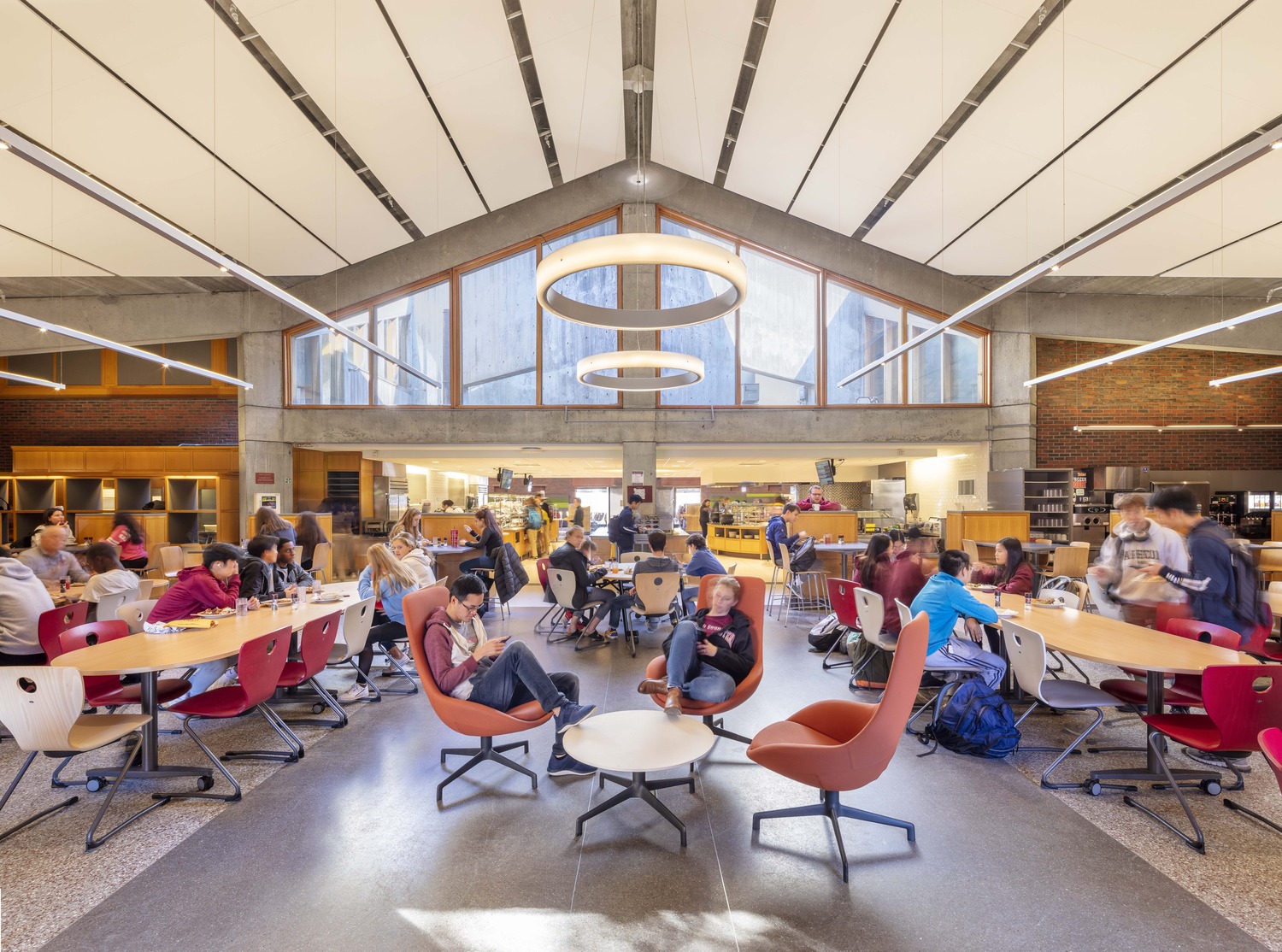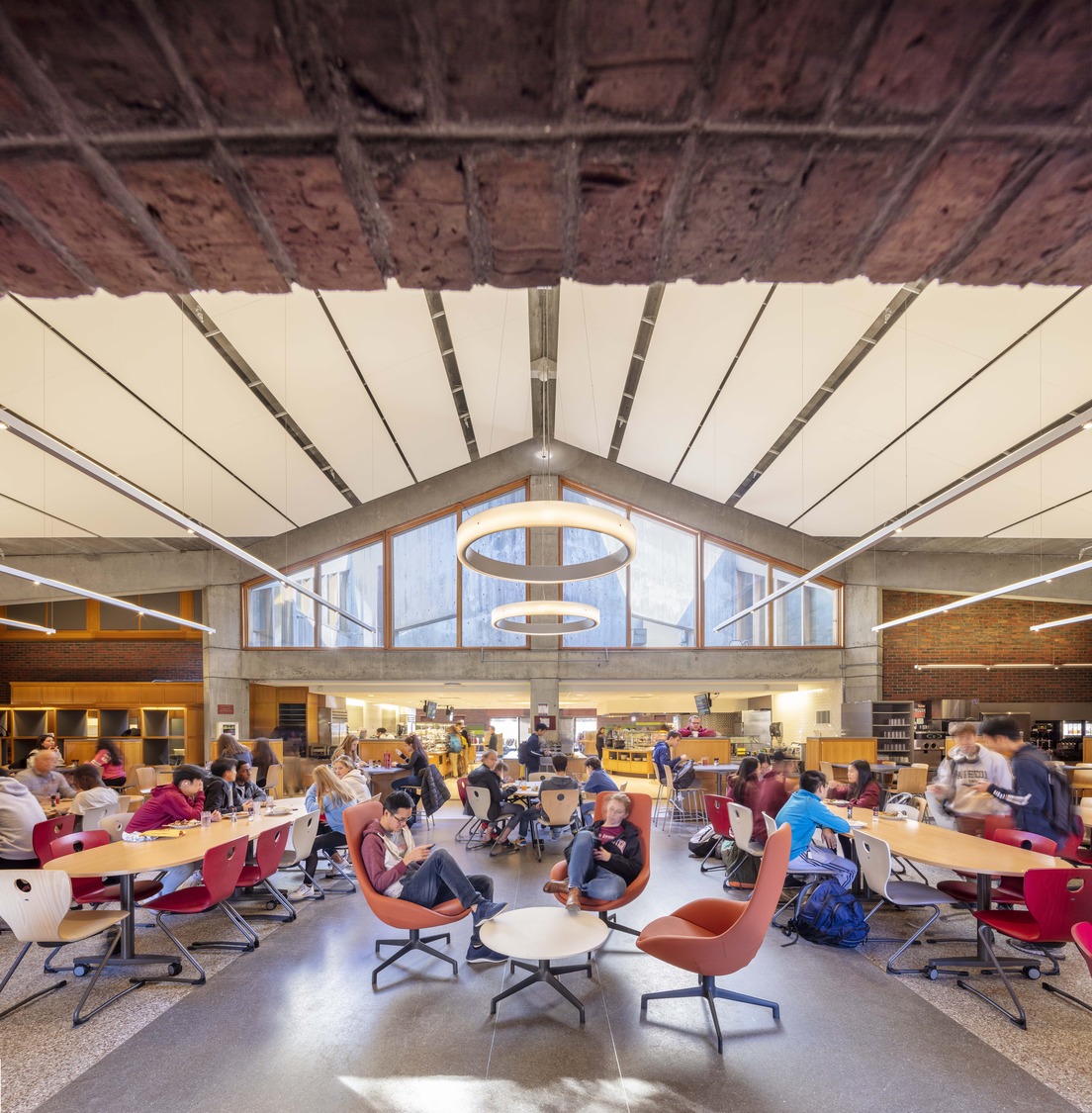Located next to Louis I. Kahn’s iconic Phillips Exeter Academy Library, the Elm Street Dining Hall was also designed by this world renowned architect and completed in 1972. In recent years, the academy has been faced with the growing need to increase seating capacity and improve the kitchen, dining, and serving areas. The completed renovation carefully blends new elements into the unique historical context of the building to maintain the spirit of the original Kahn design, while improving the spatial quality and functions to meet the needs of the 21st century.