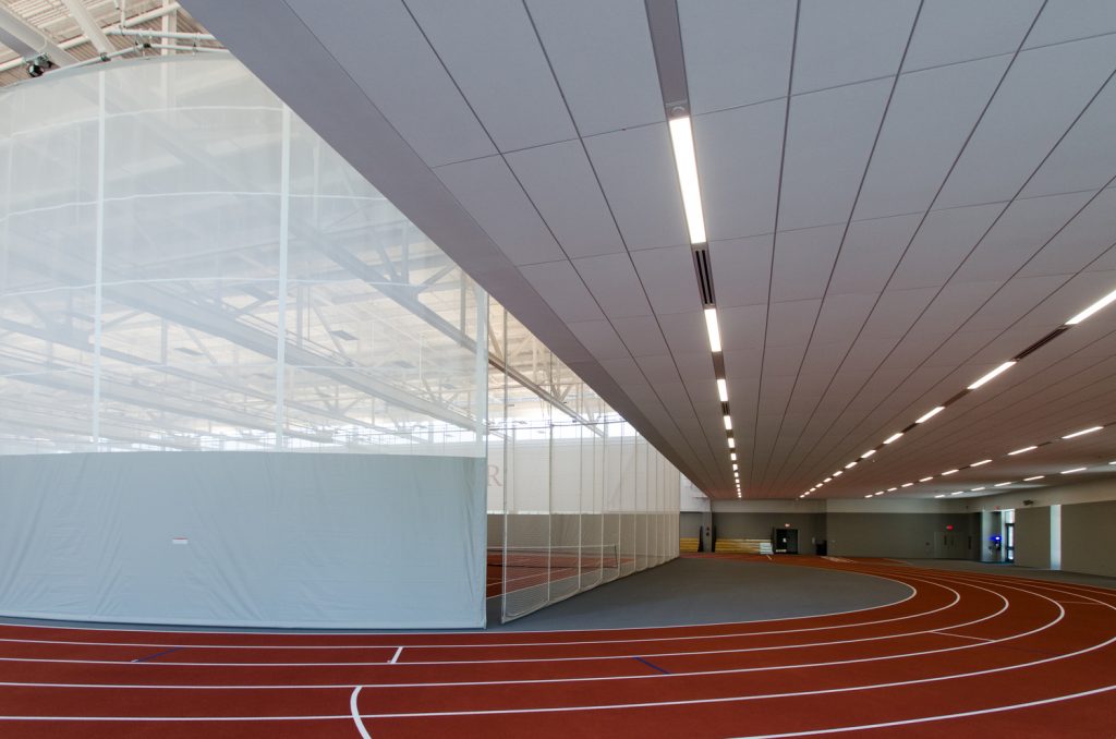 Attached to the Love Gym at Phillips Exeter Academy, this field house complements the existing athletic facilities, offering a 13,000-square-foot, mezzanine-level wrestling space above the field house floor, and a 70,000-square-foot parking level below. A fully indirect LED lighting system provides bright (but glare-free) lighting to the main fieldhouse space.