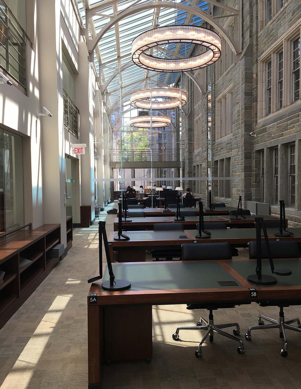 This library renovation included the relocation of Princeton University’s books reading room to a 21-foot-wide by 140-foot-long, glazed atrium space, nestled between the original library building and a 1980s-era addition. The original glass and brise soleil assembly provided reasonable solar control, but simply could not accommodate the strict 500 lux maximum required by conservators, so Lam Partners was brought in to develop a solution. This project perfectly merged quantitative and qualitative design to develop a daylighting solution that could meet the client’s visual and metric needs in this space.