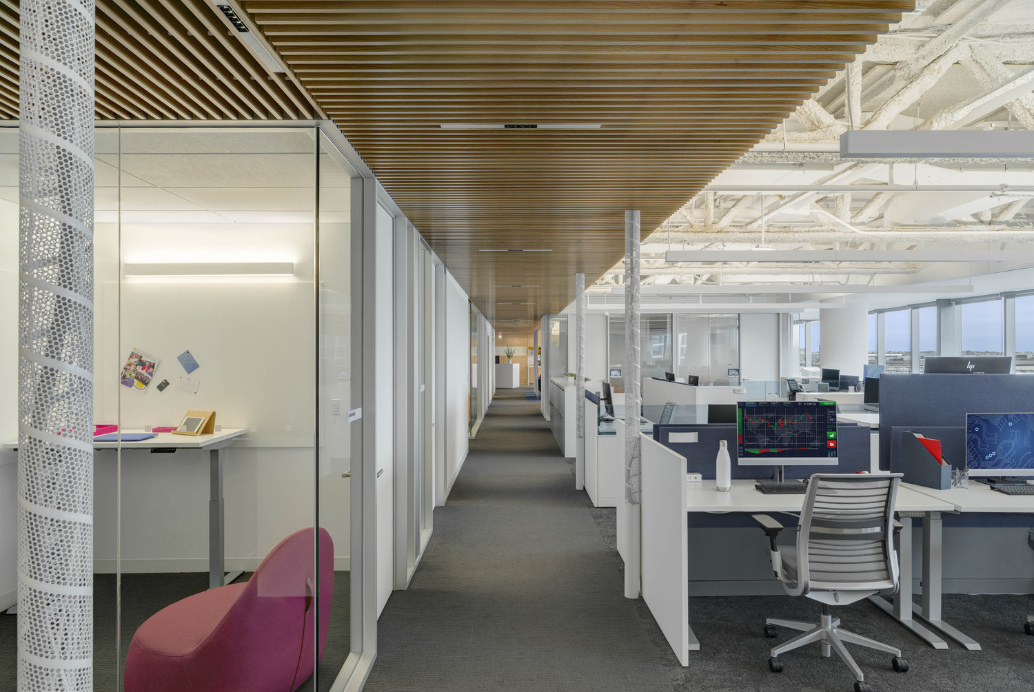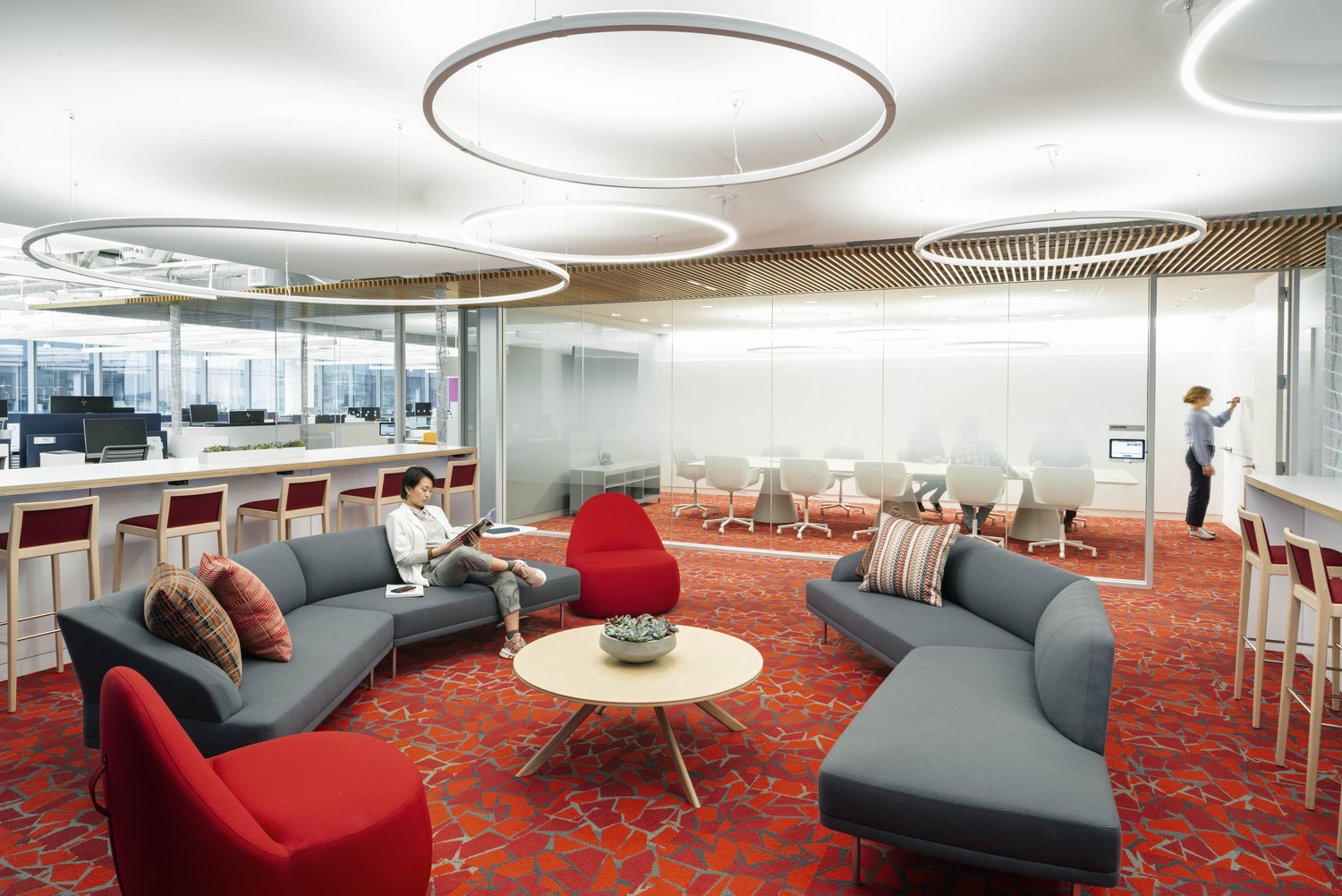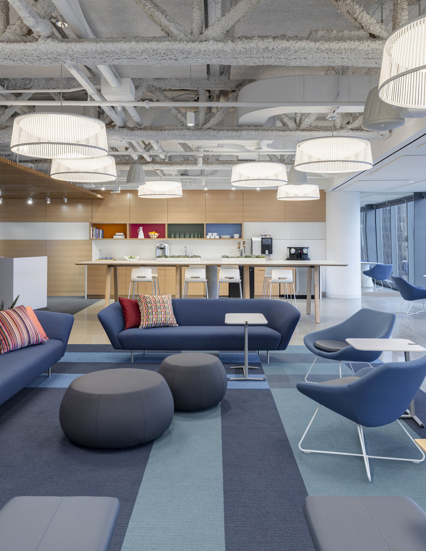 Servier, an international pharmaceutical company with a non-profit background, recently moved into 14,500 square feet of new office space in the Boston Seaport area. Open office areas are filled with sunlight and accentuated with linear fixtures that help to balance the bright, yet comfortable core, while funky pendants give collaboration areas a fun twist. The design creates a kinetic and energetic workplace within a comfortable luminous environment.