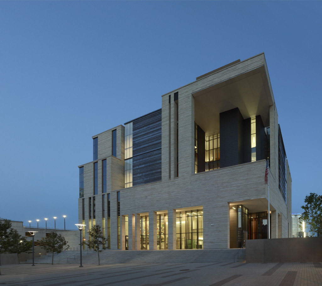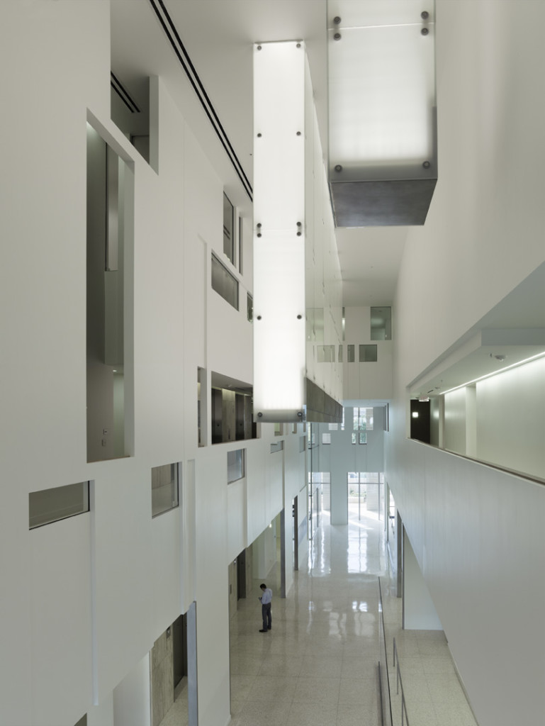 Peering in through the glass façade of this modern, yet elegant, monolithic building mass, you sense an unusual transparency; it seems that the design is as much for the